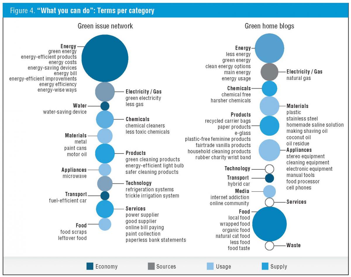 Figures 3 and 4. “What you can do”: Green home blogs vs green issue network